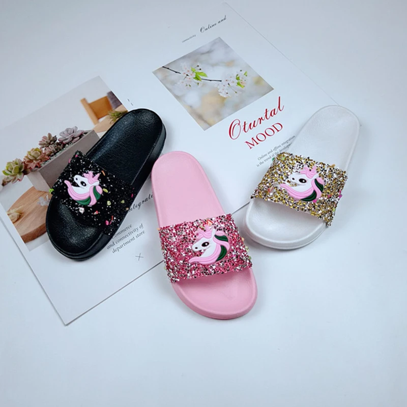 Name: Home Slippers Sandals House Shoes Unicorn-Pattern Girls Flat Slides Summer Indoor